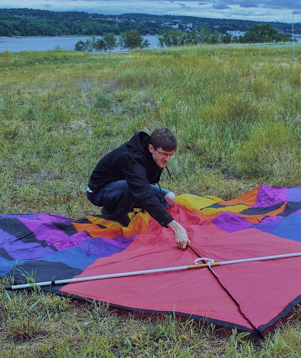 Here I am putting together this delta kite that always does the trick!